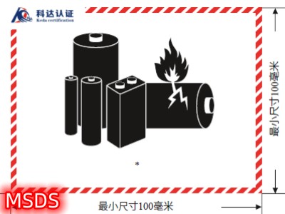 锂电池组的标记 第9类物质和物品(杂项危险物质和物品),是在运输过程中存在危险,但其他类别未包括在内的物质和物品。锂电池就在这一类危险货物中。 电池和电池组、包含在设备中的电池和电池组,或与设备一起包装的电池和电池组,凡含有任何形式锂者,均酌情划为联合国编号3090、3091、3480 或3481等。 锂电池组的标记 内装锂电池或锂电池组的包装件,按照特殊规定188 包装。 标记应标明以字母“UN”打头的联合国编号,例如,锂金属电池或电池组-UN 3090;或锂离子电池或电池组-UN 3480。当锂电池或锂电池组装在设备上或与设备包装在一起时,应根据情况标明以“UN”打头的联合国编号,如UN 3091 或UN 3481。如包装件中装有不同联合国编号的锂电池或电池组,应用一个或多个标记标明所有适用的联合国编号。 标记应为长方形或正方形,边缘为影线。尺寸最小100 毫米宽 x 100 毫米高,影线的宽度至少为5 毫米。符号(一组电池,一个已经损坏、冒火,放在锂离子或锂金属电池组或电池的联合国编号上方)为黑色,白底或适当的反差底色。影线为红色。如果因包装件大小的需要,尺寸可减小,但不得小于100 毫米宽 x 70 毫米高。在未明确规定尺寸的情况下,所有要素都应与图式比例大致相当。